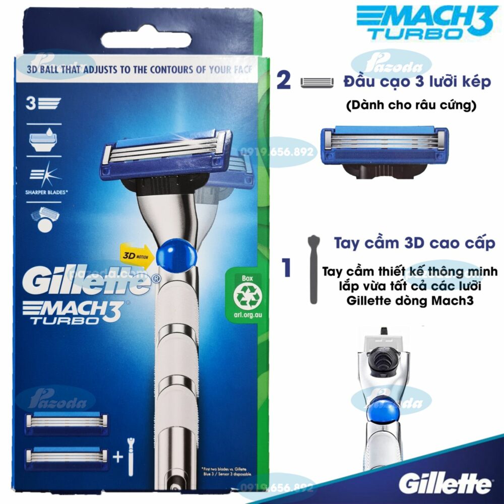 Dao cạo râu 3 lưỡi Gillette Mach 3 Turbo 3D (1 tay cầm và 2 đầu cạo)