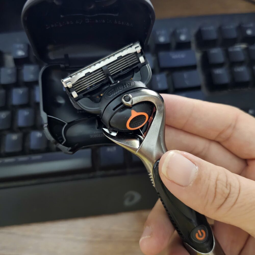 - Tay cầm với khớp nối thông minh để tháo lắp phù hợp với tất cả các loại lưỡi Gillette dòng Fusion/ Proglide/ Proshield/ Intimate và Skinguard