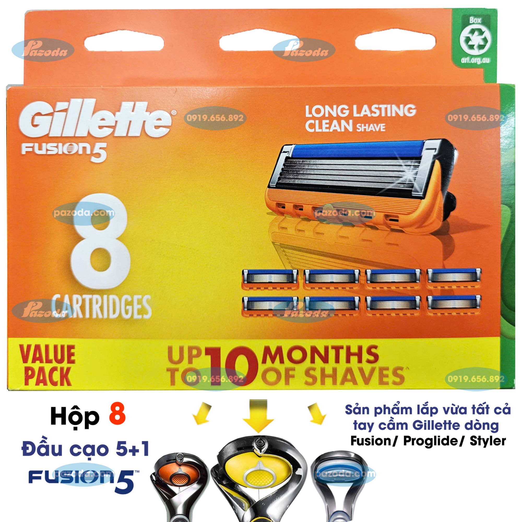 Hộp 8 lưỡi dao cạo râu Gillette Fusion5 với 8 đầu cạo 5+1 Gillette Fusion5 sản phẩm lắp vừa tay cầm Gillette dòng Fusion/ Proglide/ Intimate và Styler.